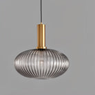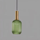 Apportez de l'élégance à n'importe quelle pièce avec la Lampe Suspendue En Verrerie. Ses teintes de bijoux et son design élégant mélangent sans effort les styles modernes et classiques. Avec un abat-jour en verre côtelé délicat et des accents en métal plaqué or, il crée un éclairage d'ambiance doux qui met en valeur n'importe quel décor.