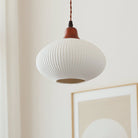 Suspension Japonaise Vintage En Céramique Plissée À 1 Ampoule En Bois Et Dôme Rond