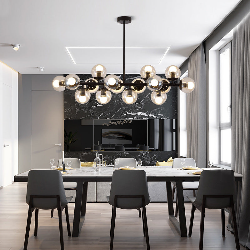 Lustre Contemporain Scandinave À 16 Ampoules En Forme De Globe Rond En Fer Et Verre Pour Salle À Manger