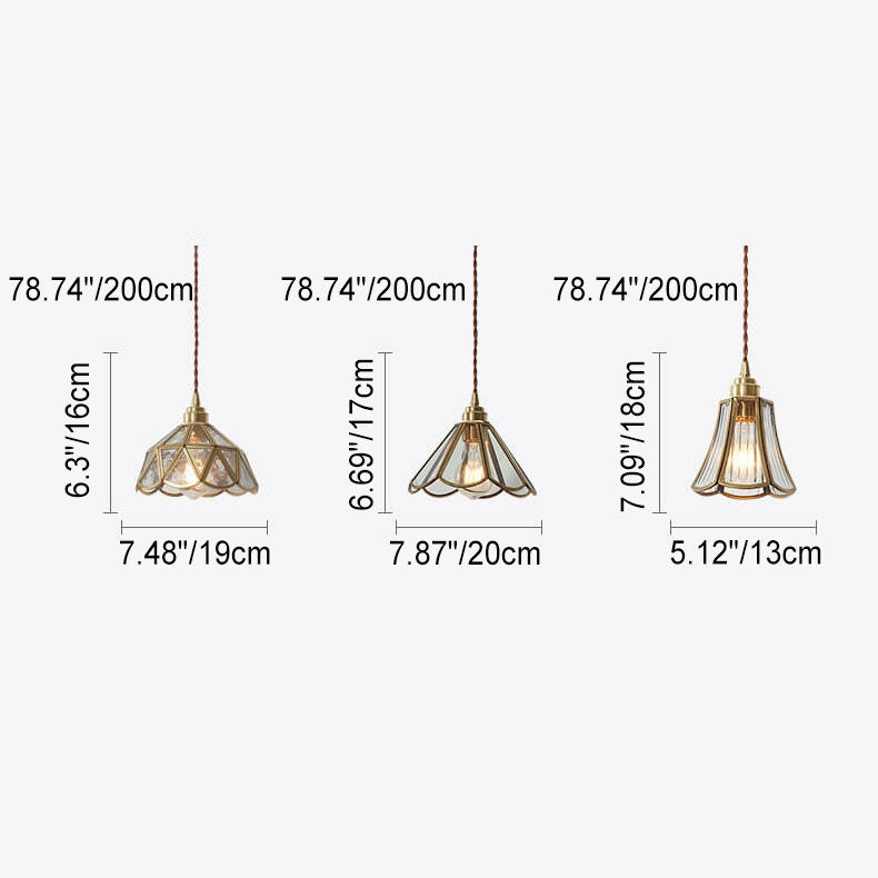 Suspension Japonaise Vintage En Forme De Cône Géométrique En Verre Et Cuivre À 1 Ampoule