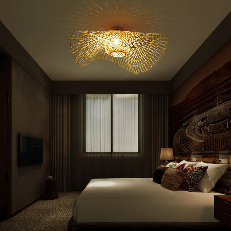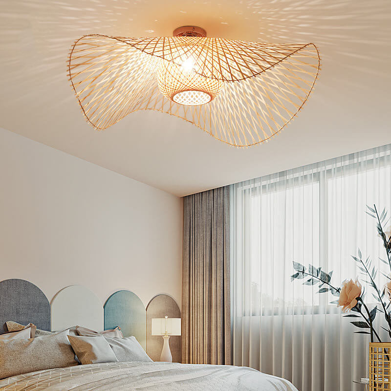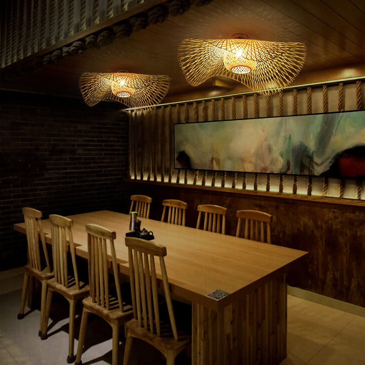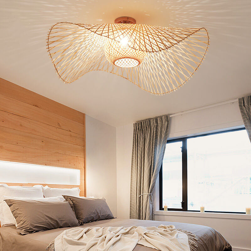 Luminaire Encastré Moderne En Bambou Tressé Avec Éléments Japonais