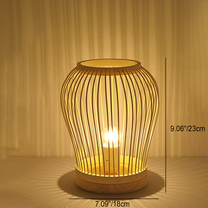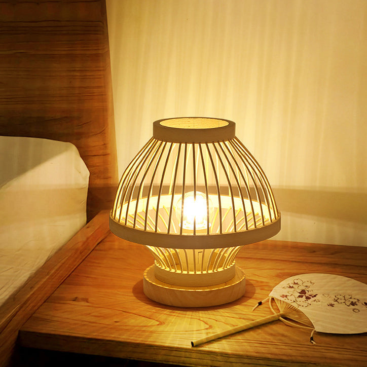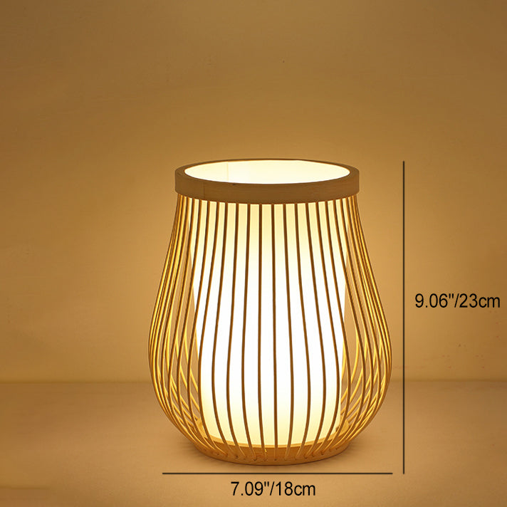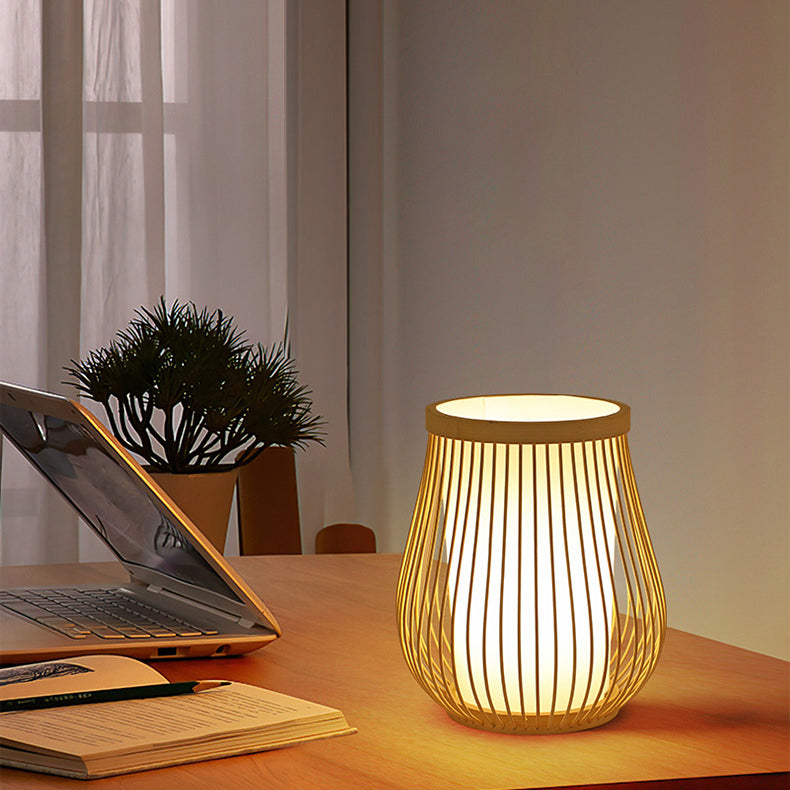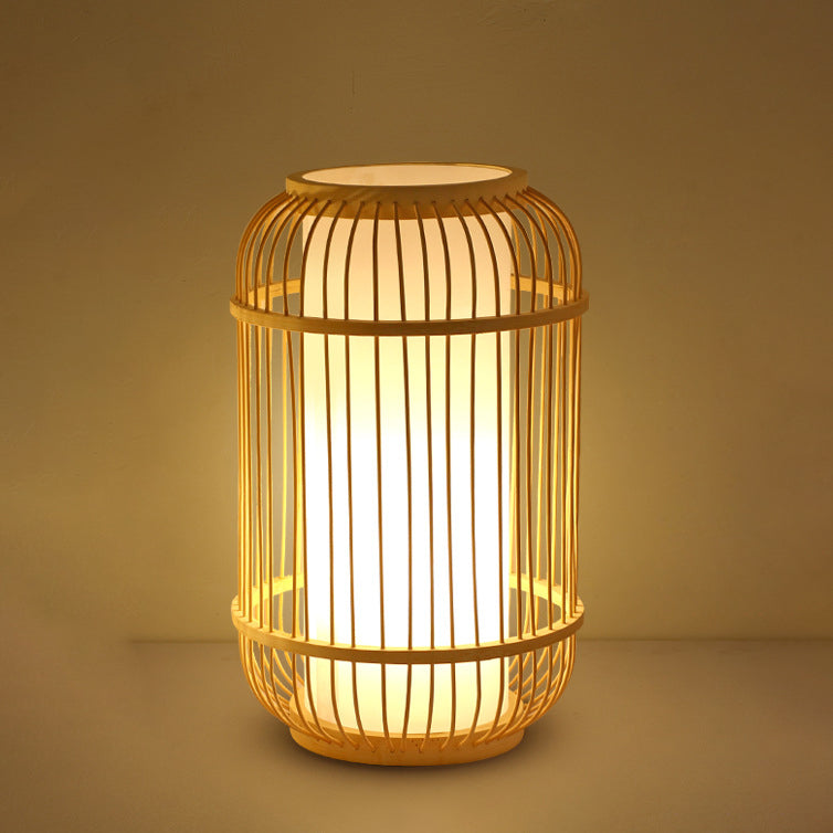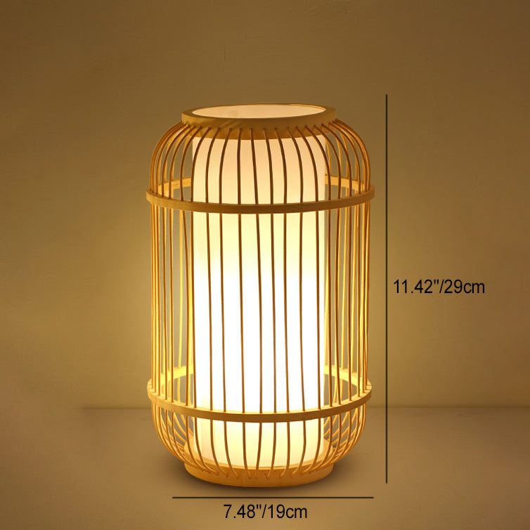 Lampe De Table Contemporaine En Forme De Lanterne En Bois Et Bambou Tissé À 1 Lumière Pour Chambre À Coucher