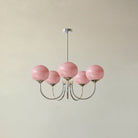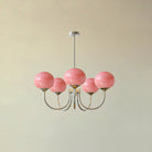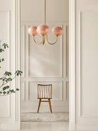 - Elegant Design: The chandelier combines golden finishes and pink glass shades, creating an ambiance that is both modern and sophisticated.