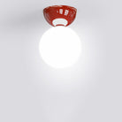 Enhance the ambiance of your hallway with this Scandinavian spherical ceiling light made of iron and glass. Its elegant semi-recessed design, available in bright red, green, or silver, effortlessly complements modern interiors. Made from durable iron and glass, this light fixture offers a chic and practical solution for narrow spaces.