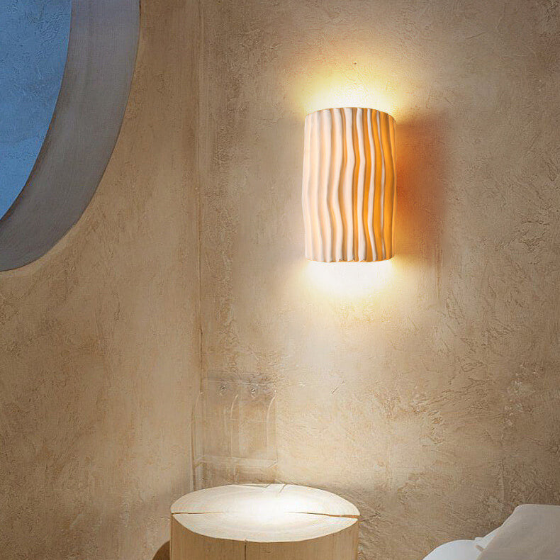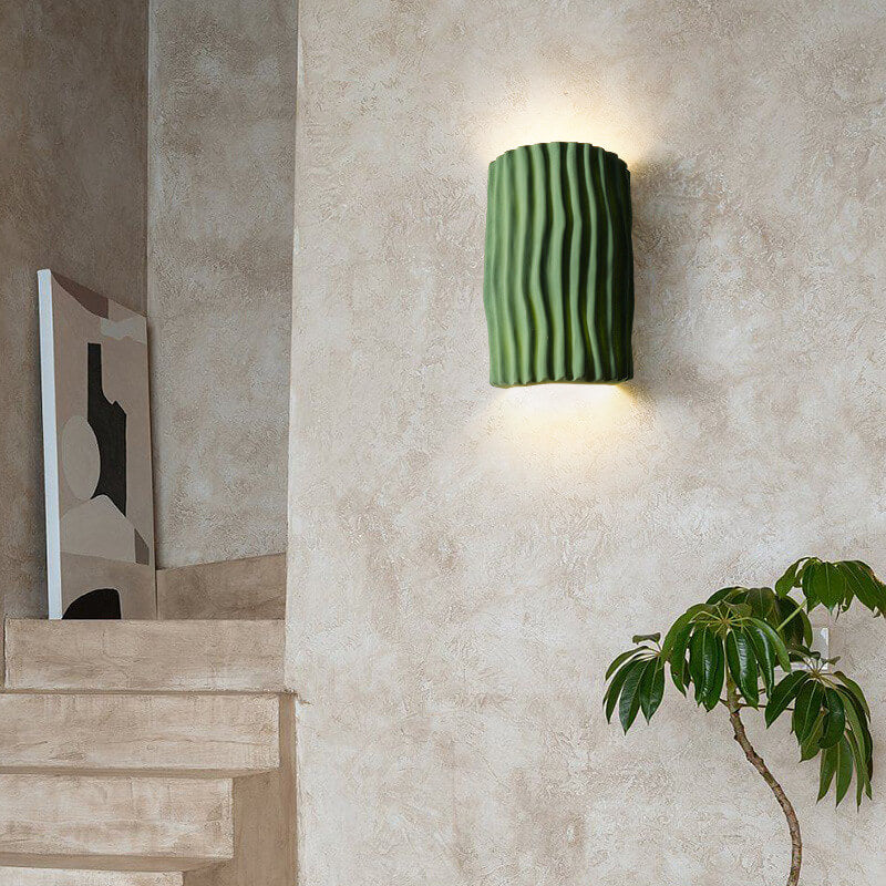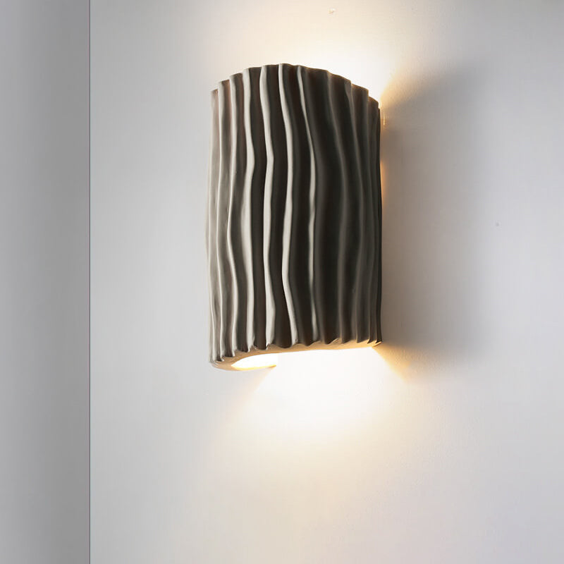 Elevate your living room with this elegant wall sconce inspired by Nordic design. Featuring a wavy textured resin design and a semi-circular shape, it adds depth and visual interest to your space. With two lights, it provides a warm and welcoming ambiance perfect for modern interiors.