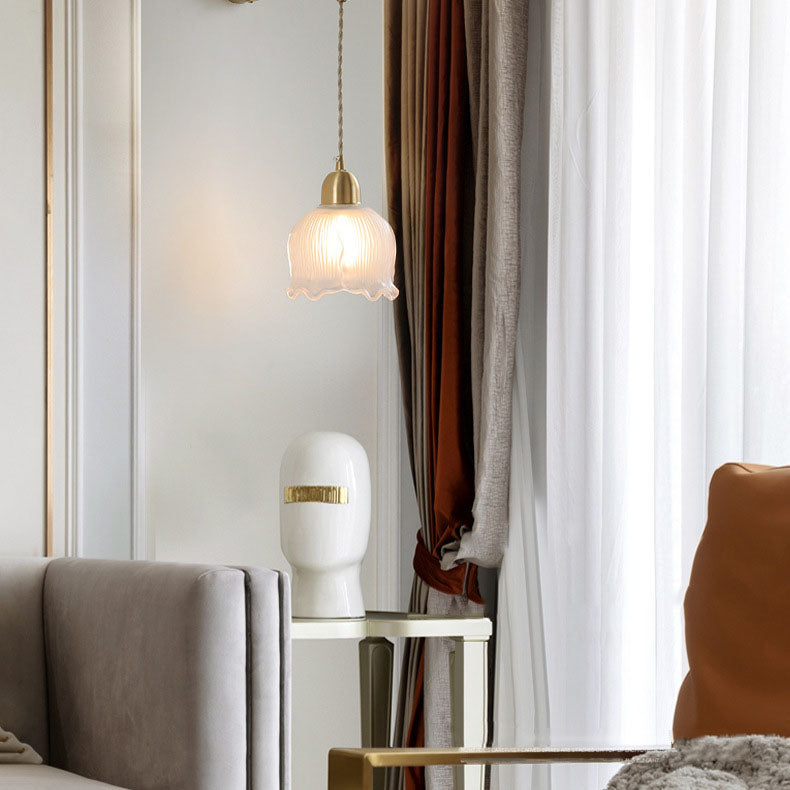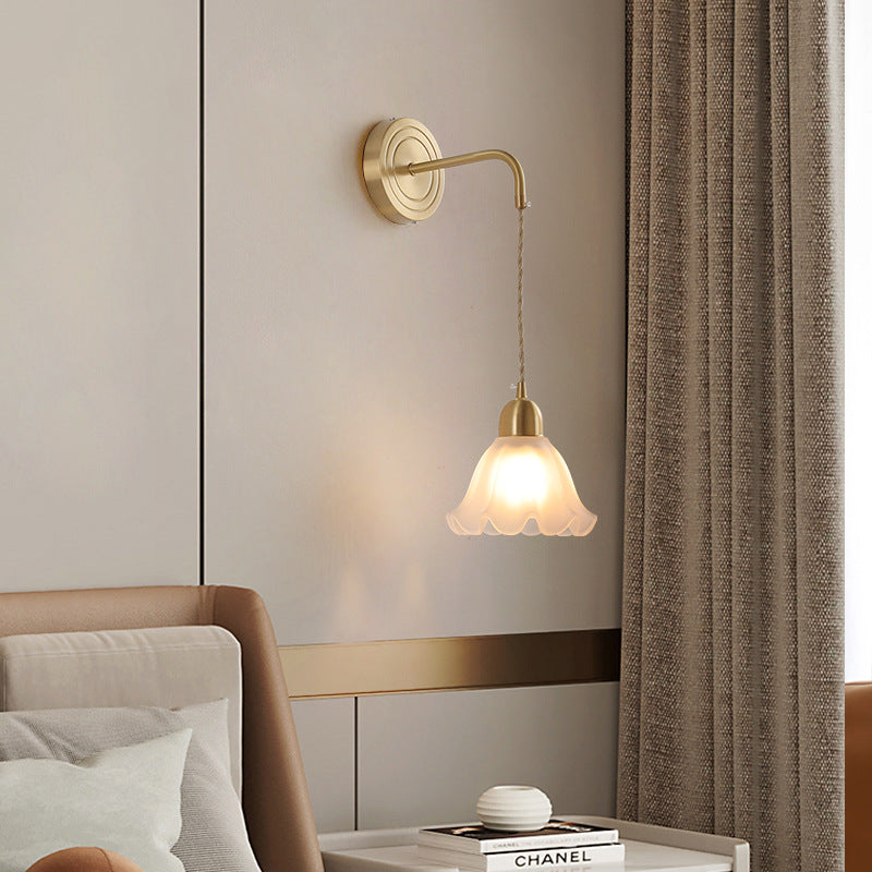 A refined lighting that adds a touch of charm and sophistication to your interior. With its delicately shaped glass shade in the form of petals and its brass structure, this wall lamp diffuses a soft and warm light. Perfect for a bedroom, living room, or office, it offers a perfect balance between modernity and vintage inspiration.
