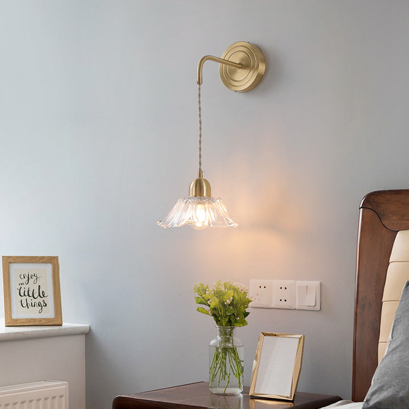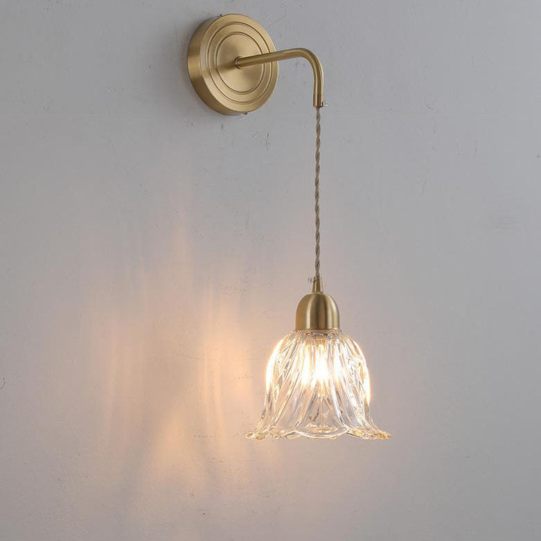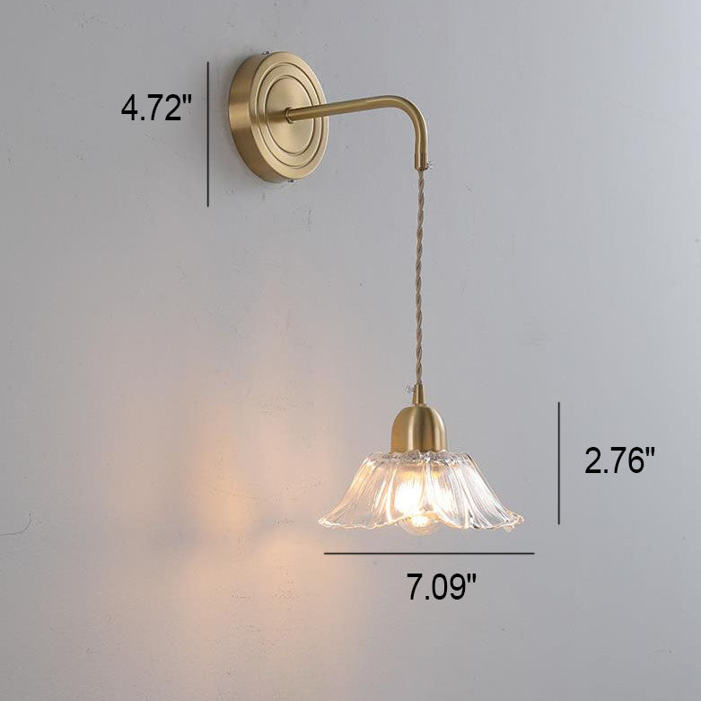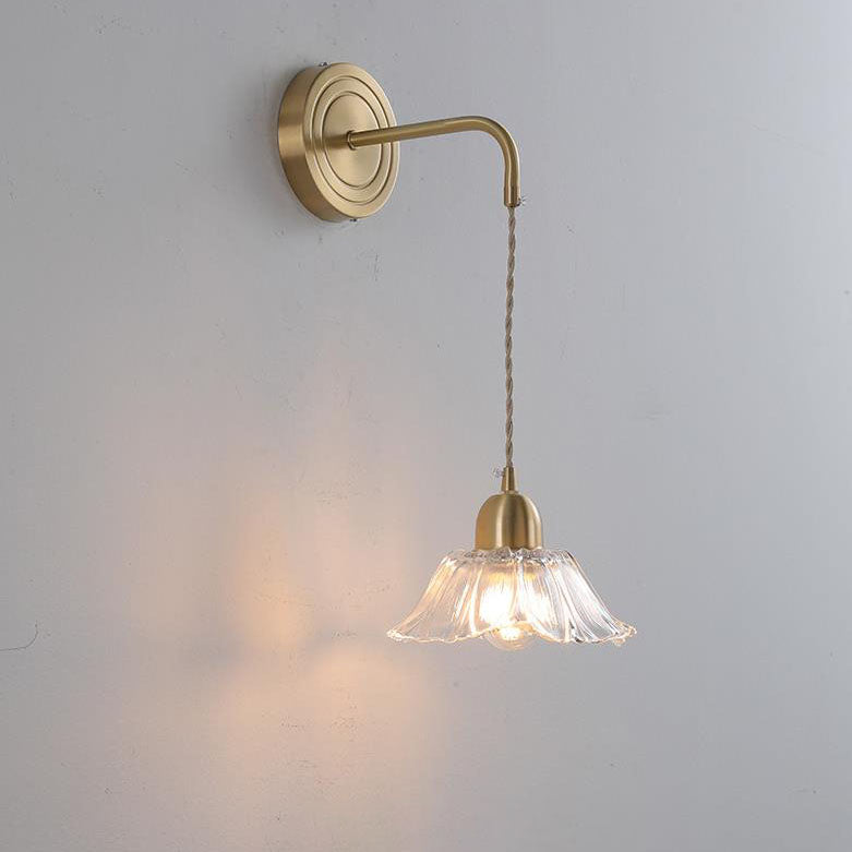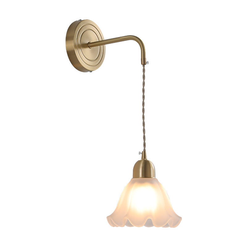 Vintage Nordic Wall Sconce in Brass with 1 Bulb and Glass Flower Petals