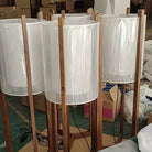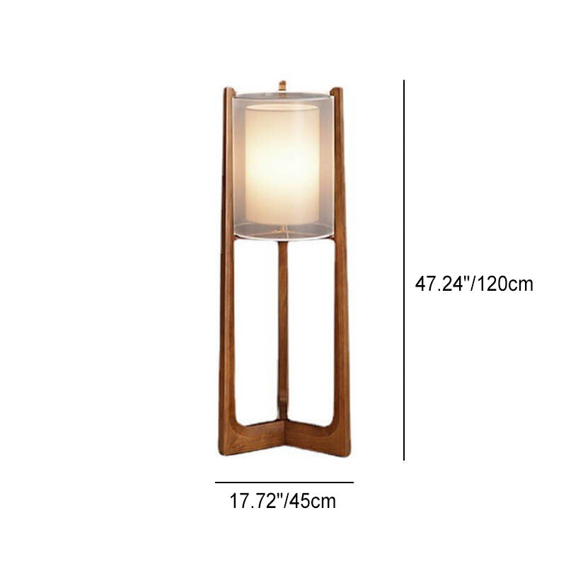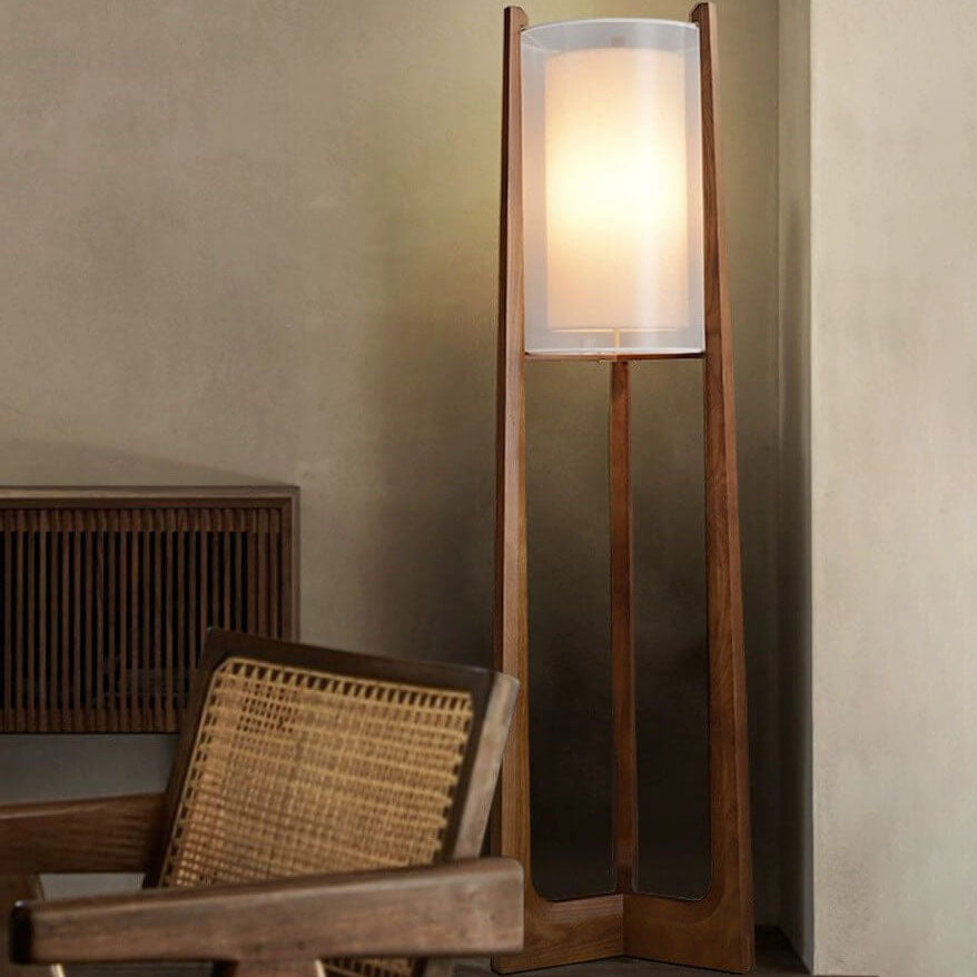 Minimalist Japanese Floor Lamp in Solid Wood and Fabric with 1 Light