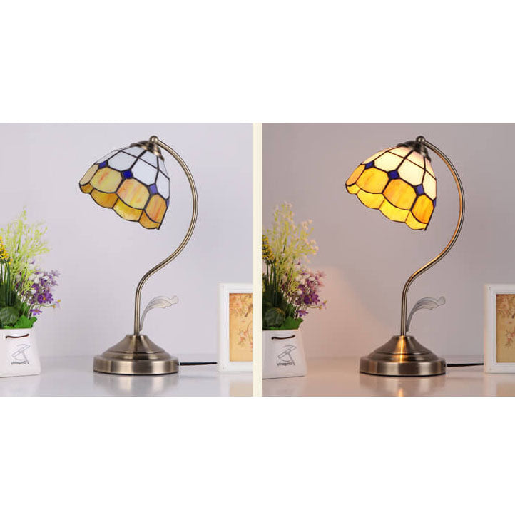 Vintage European Style Tiffany Round Head Glass Table Lamp with 1 Light