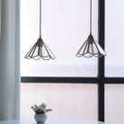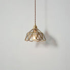 Suspension Japonaise Vintage En Forme De Cône Géométrique En Verre Et Cuivre À 1 Ampoule